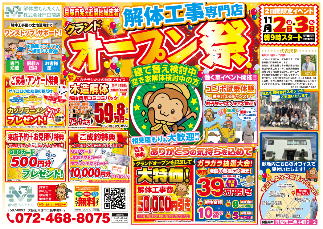 無事グランドオープンを実施できました~! | 貝塚市の解体工事専門店 解体屋もんたくん