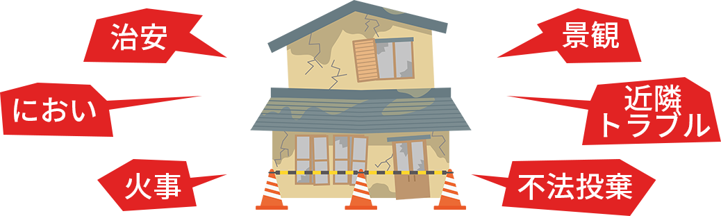 空き家は不法侵入や放火のリスクが高く、問題視されています。解体工事を行わず空き家を放置すると、地域全体の安全性を損なう恐れがあります。
